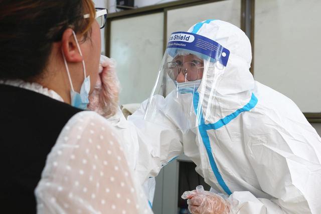 在海安體育中心核酸采樣點,記者看到受檢的群眾已經(jīng)排起了3條長隊,放眼望去約有數(shù)百人。大家?guī)е谡志従徬蚯耙苿,秩序井然。隊伍中沒有人高聲喧嘩,也沒有人插隊,在工作人員的引導(dǎo)下測溫掃碼,登記個人信息,前兩道程序正常后方可進(jìn)入采樣區(qū)。采樣區(qū)的醫(yī)護人員均身著防護服、頭戴護目鏡依次排開,快速精準(zhǔn)地為市民進(jìn)行核酸檢測。從摘下口罩,配合醫(yī)護人員采集咽拭子,整個過程不到一分鐘,現(xiàn)場還有志愿者引導(dǎo)迅速安全撤離。 海安市體育中心作為該市新冠疫苗集中接種點,具有物資設(shè)備足、人員力量強的良好基礎(chǔ),并在本輪全員核酸檢測中發(fā)揮引領(lǐng)作用。“自接到通知,我們從昨晚9點開始部署任務(wù),全力保障核酸檢測工作有序進(jìn)行。我們調(diào)動了400只鐵馬和400個錐形桶,將體育中心采樣點分成三條道,每一條道保留300人排隊的間隙,確保人與人之間間隔一米以上。此外,我們動員了中心全體工作人員,教體局的志愿者,抽調(diào)佳兆業(yè)運營公司40人,一同做好全民核酸檢測保障工作。”海安市體育中心副主任金秀平說。 冰塊、方言歌曲齊助陣 志愿暖心采集舒心 6日起,來自海安46個機關(guān)、企事業(yè)單位的2300多名志愿者主動投身一線,布置場地、維持秩序、掃碼測溫、引導(dǎo)采樣,爭分奪秒奮戰(zhàn)在各個核酸檢測采樣點。 “大爺,您把身份證帶帶好,口罩戴好,等下跟著隊伍去做核酸啊!7日上午8時許,記者來到濱海新區(qū)范塹村,角斜紅旗民兵團的志愿者們正一面溫馨提醒,一面引導(dǎo)居民掃碼登記,并對年長者進(jìn)行手把手操作,力爭提高檢測效率。
